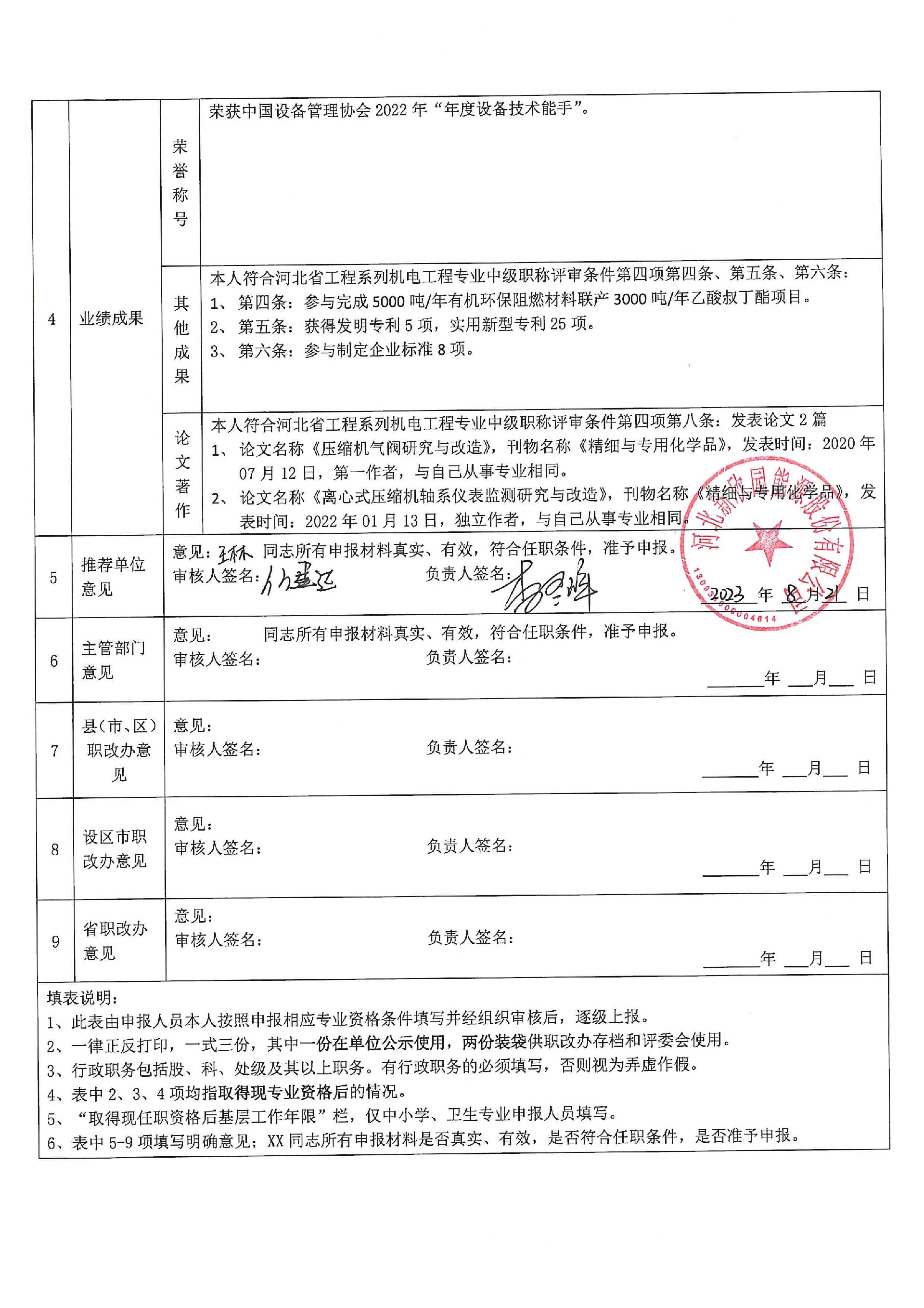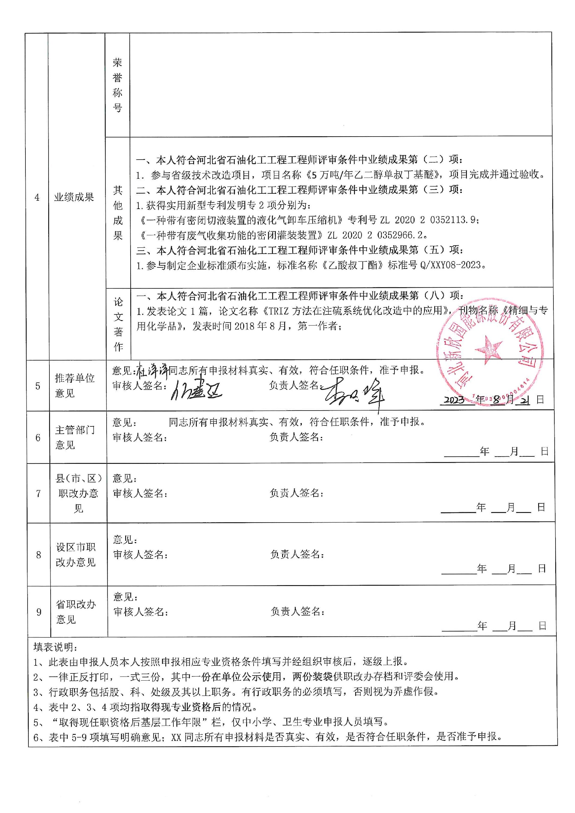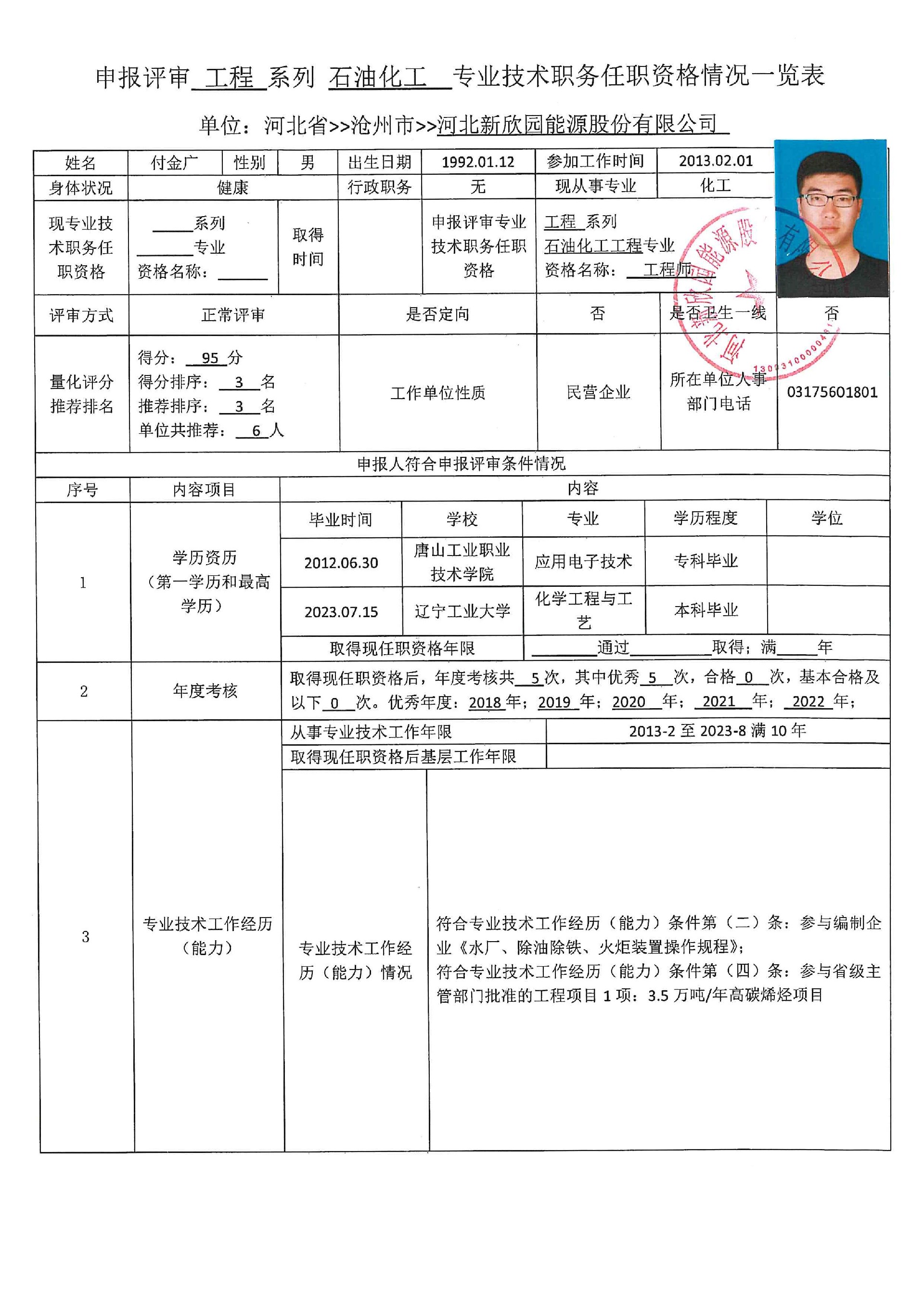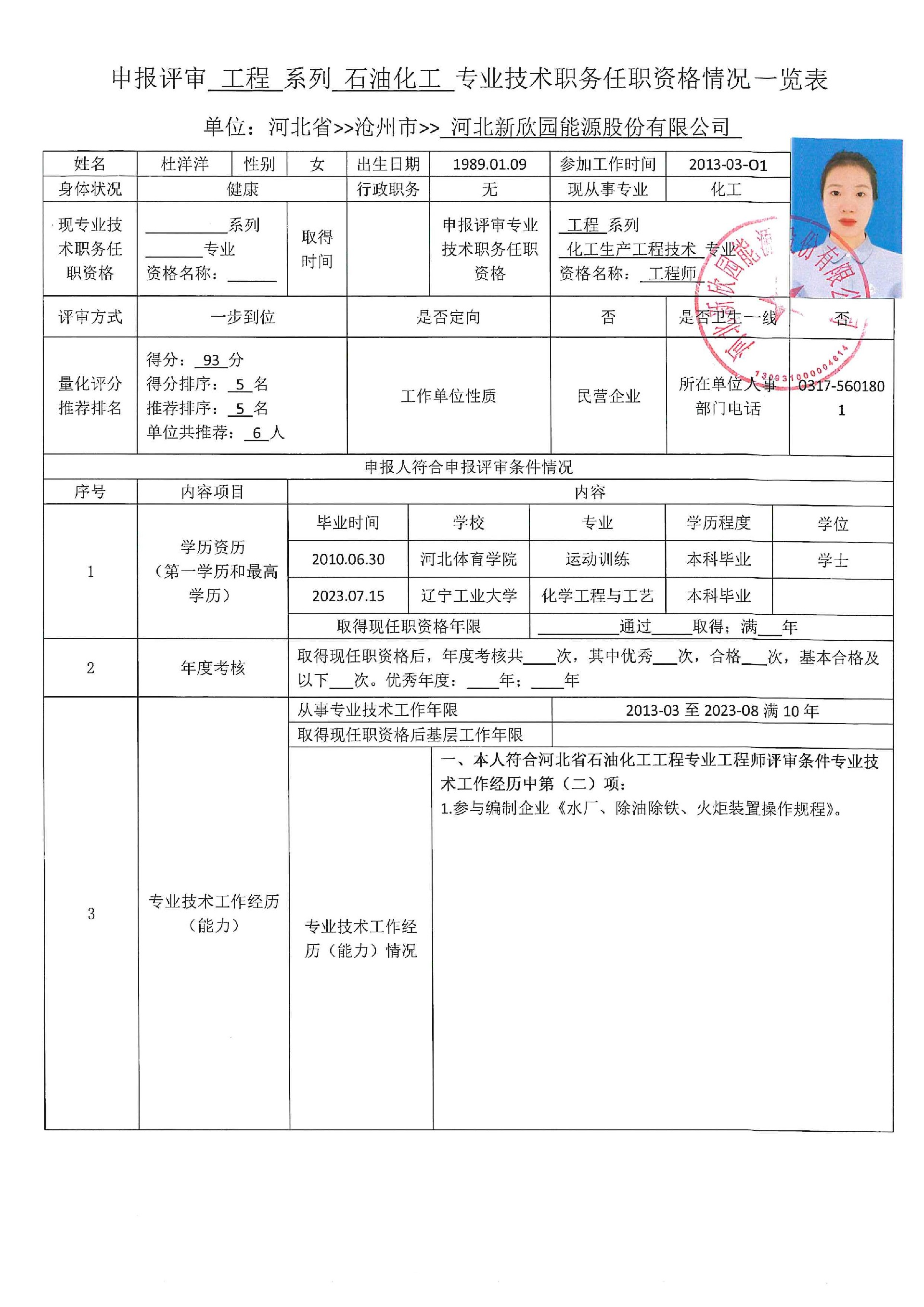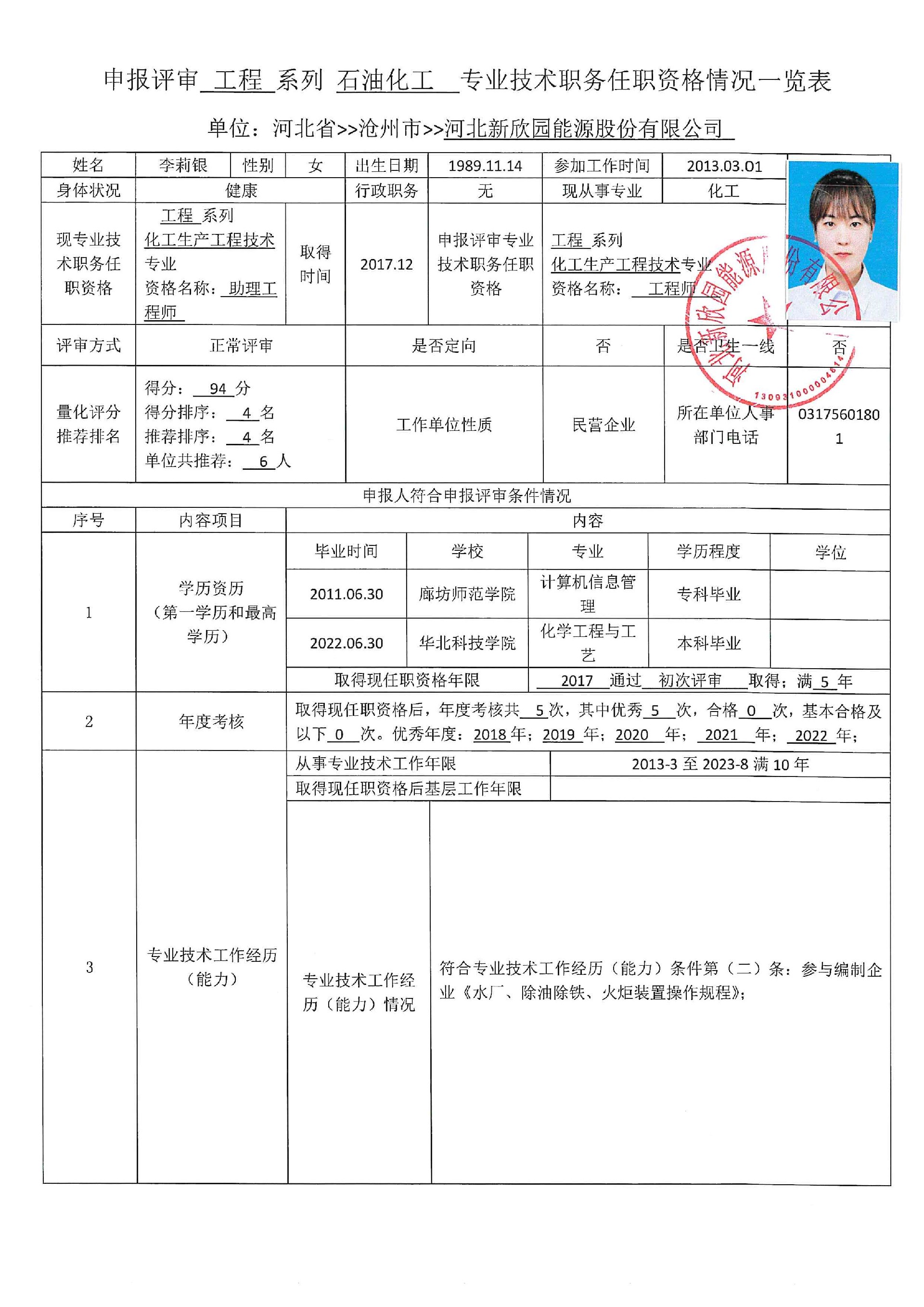 2023年度申报评审中级职务任职资格人员情况登记表