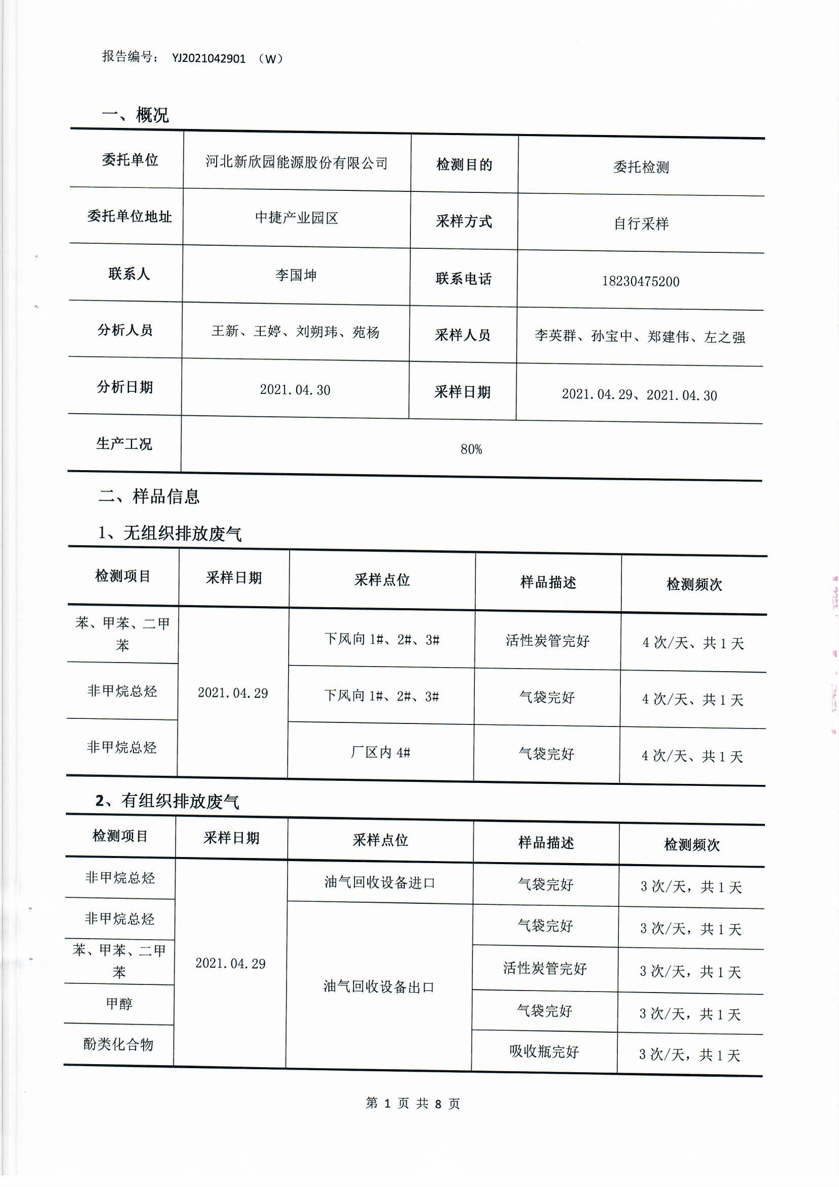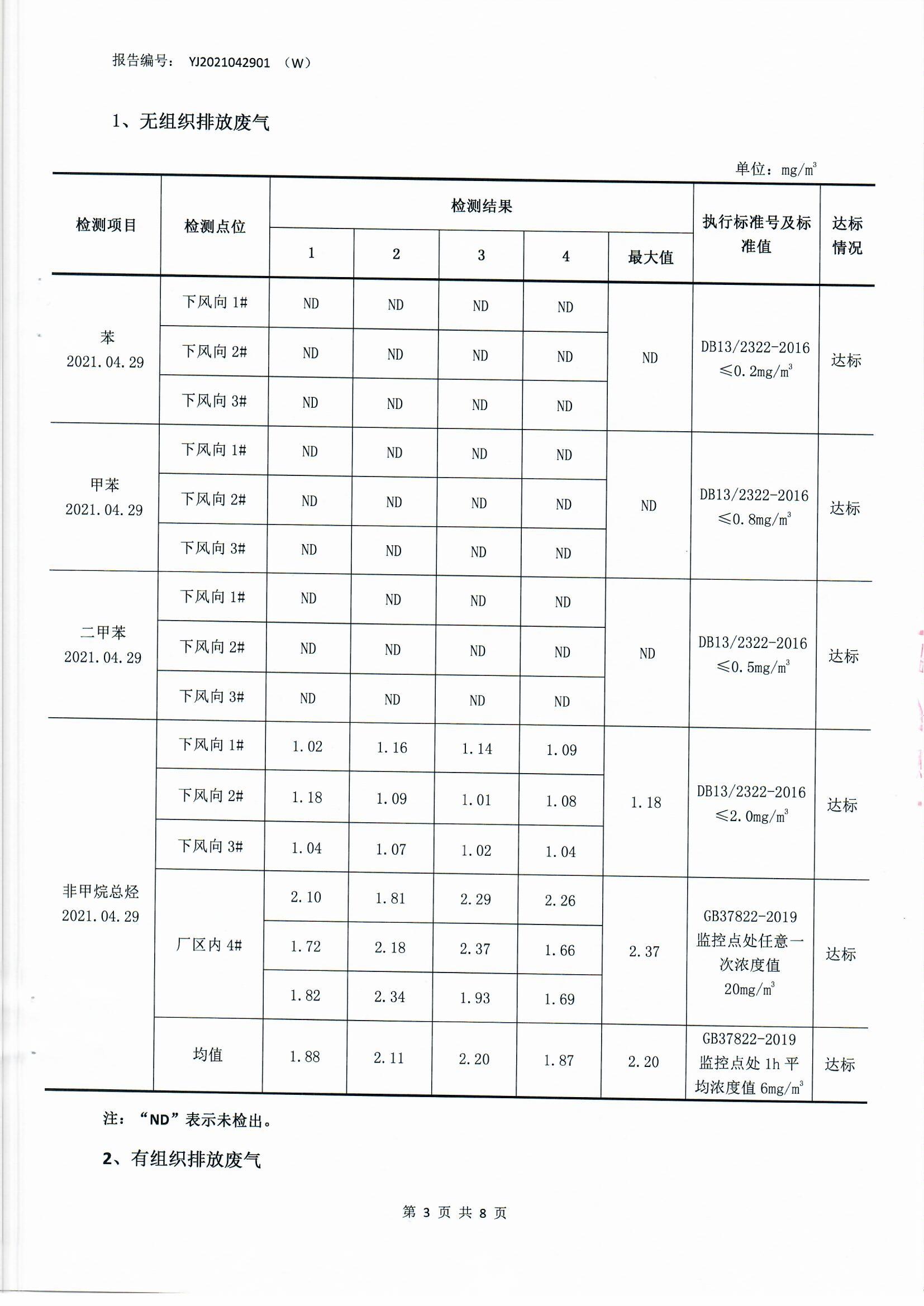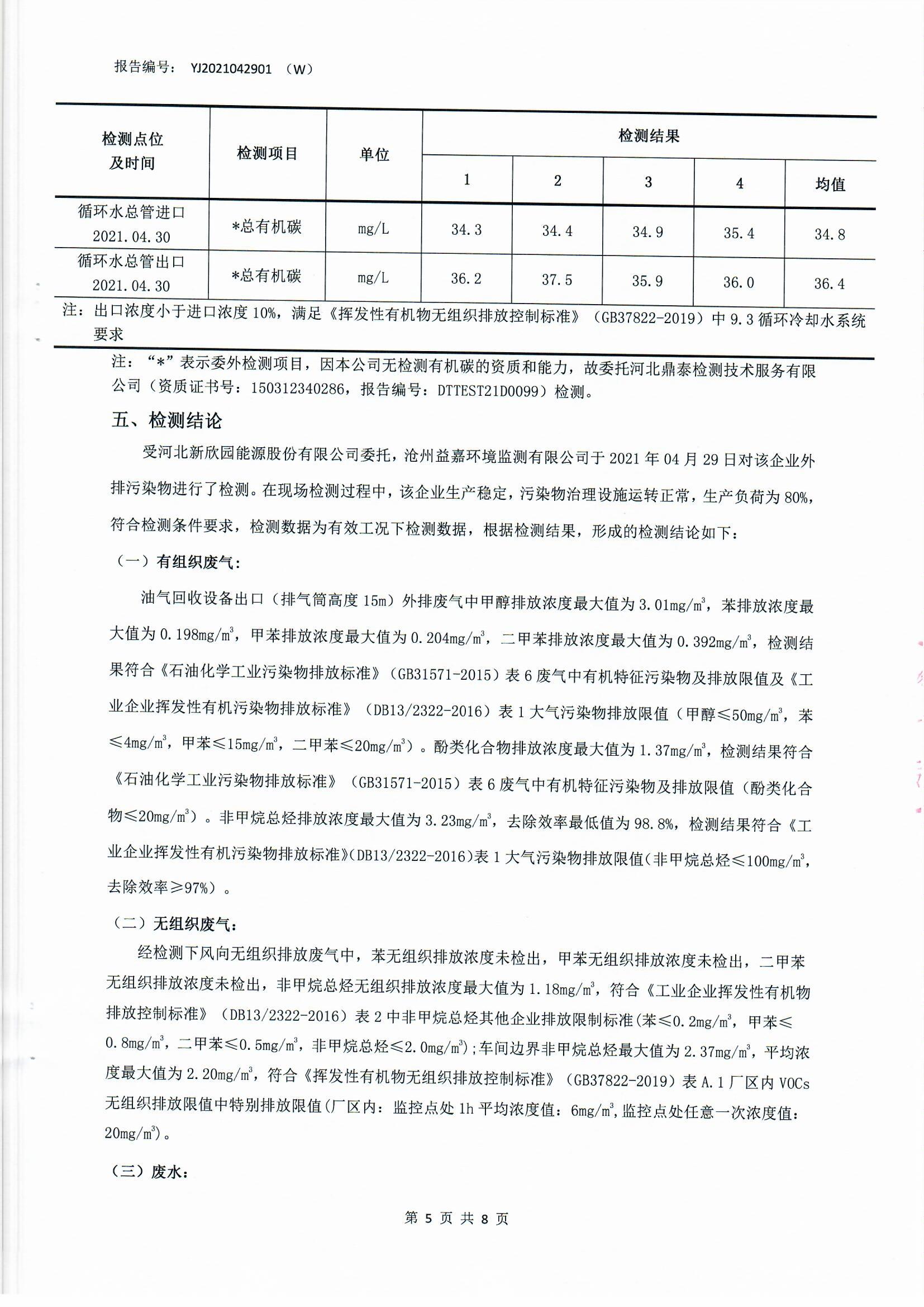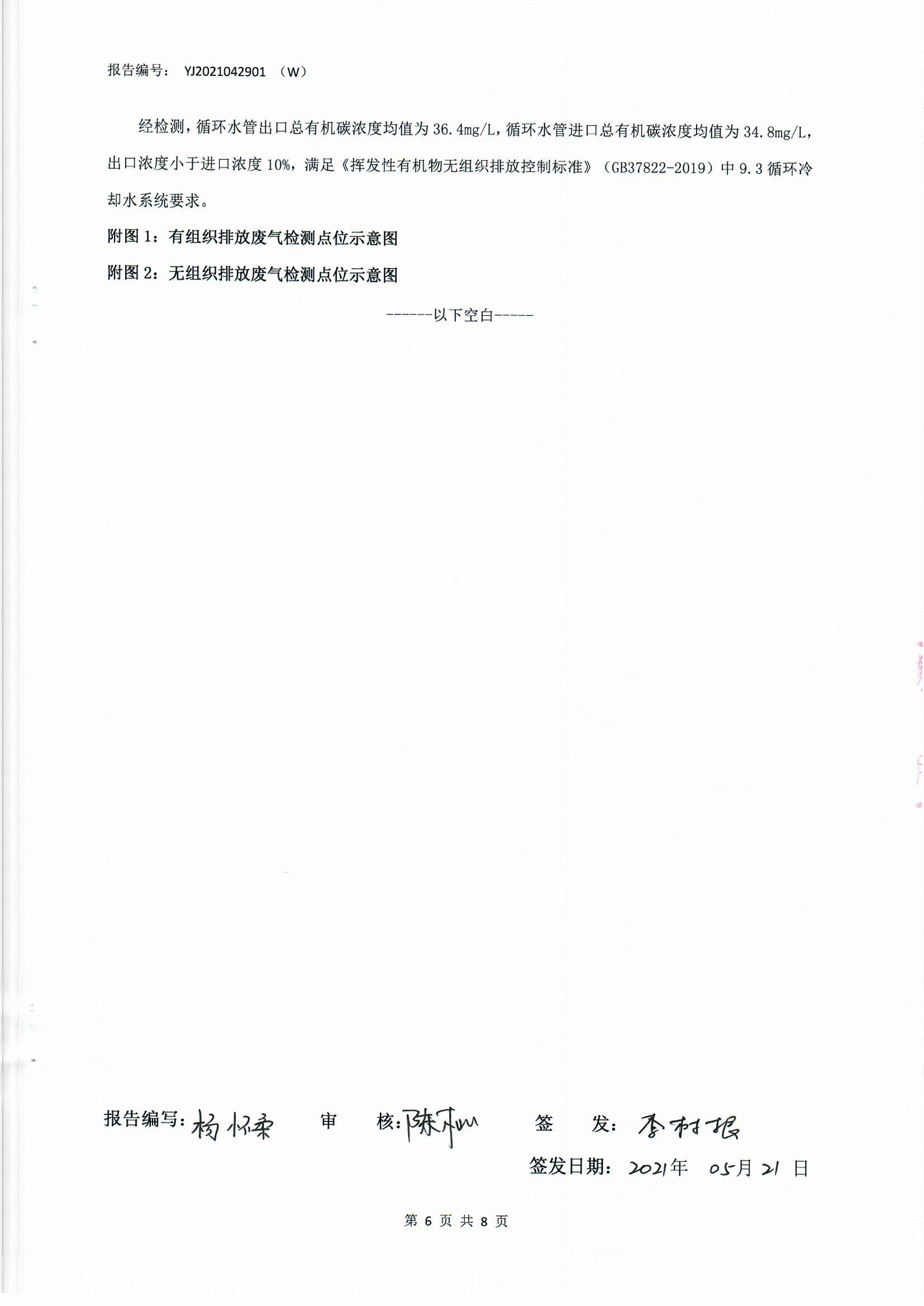新欣园公司2021年上半年VOCs有组织排放及厂界检测