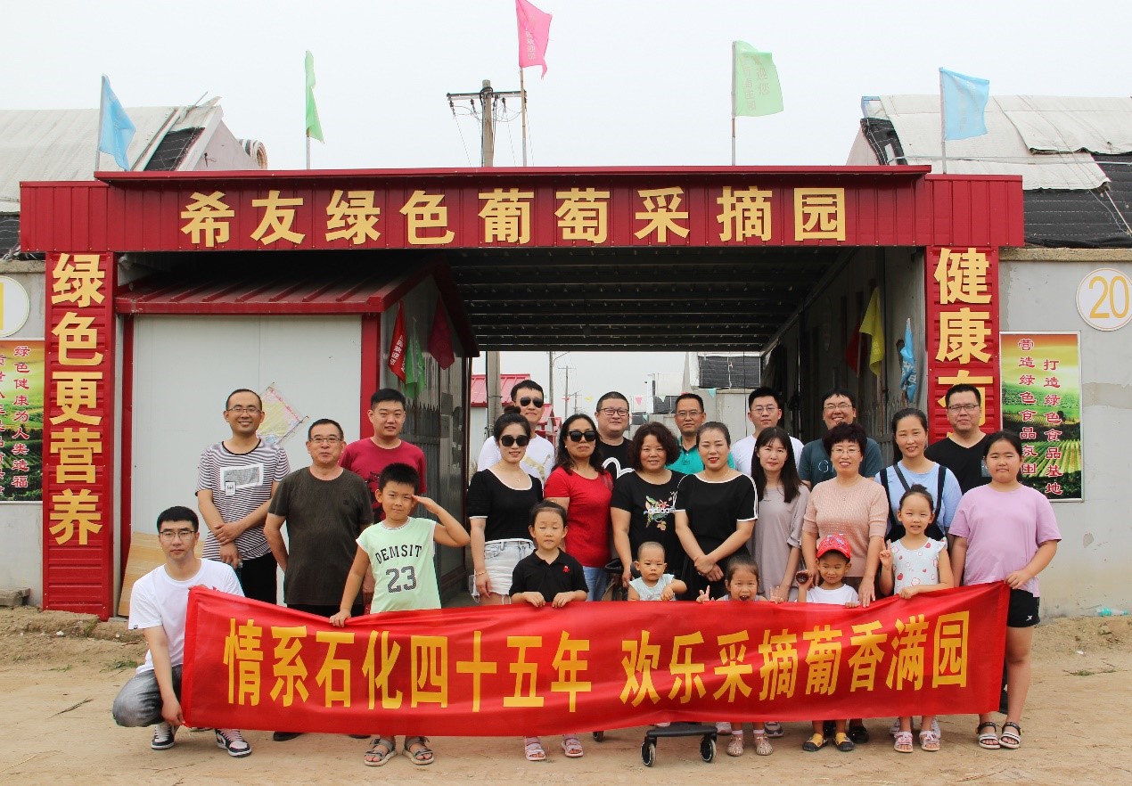 7月18日,新欣园党支部组织党员干部及家属来到周庄葡萄采摘园,开展了主题为“情系石化四十五年,欢乐采摘葡香满园”的团建活动,团结各个“小家庭”,共建石化“大家庭”。