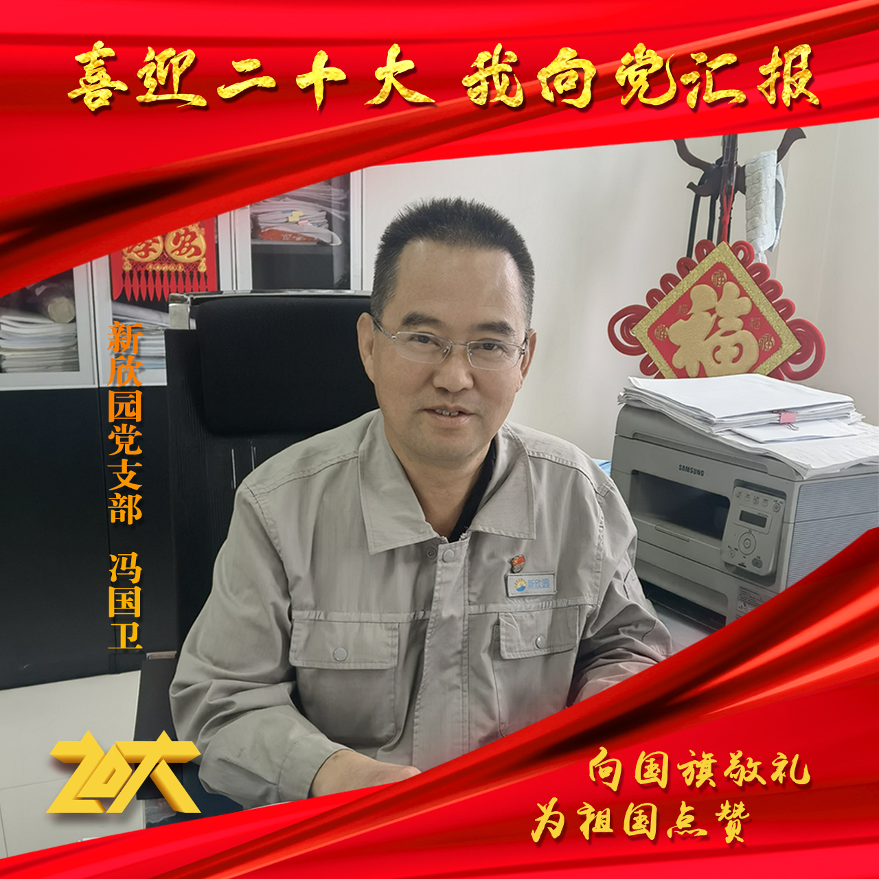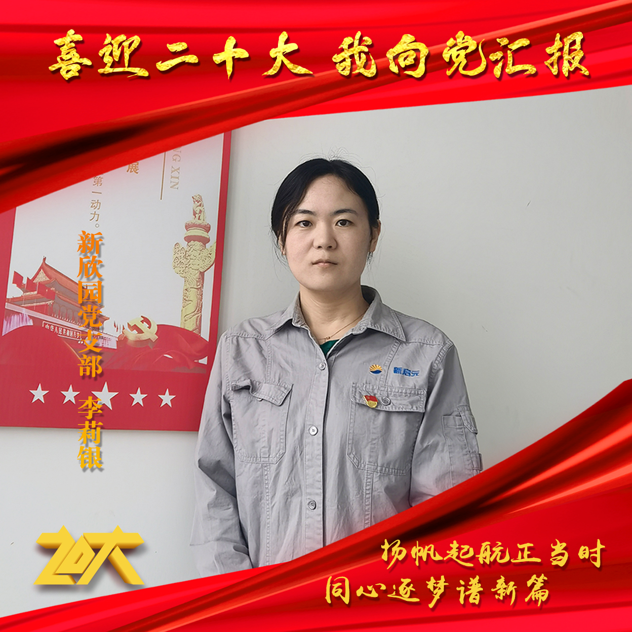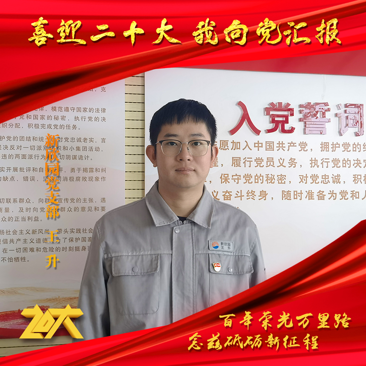 百年征程、波澜壮阔,百年初心、历久弥坚。中国共产党第二十次全国代表大会即将召开,在党向第二个百年奋斗目标进军新征程的重要时刻,新欣园党支部以昂扬的精神风貌迎接党的二十大胜利召开,并郑重对党作出庄严承诺与美好祝福。